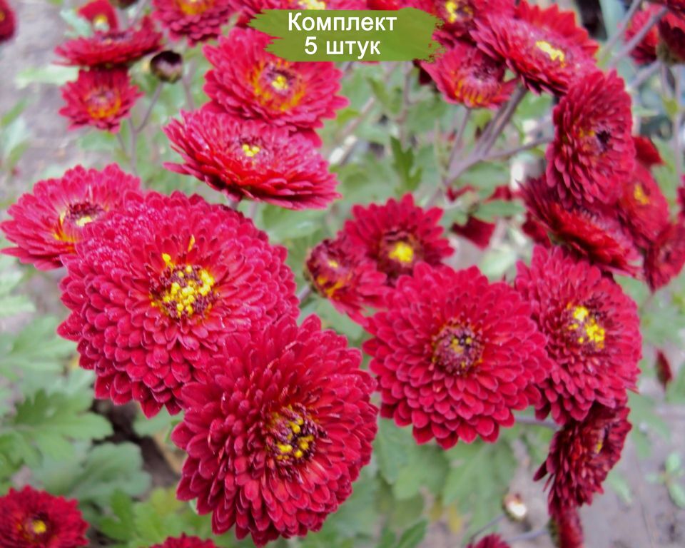 Саженцы среднецветковой хризантемы бордовой оранжевой Зарница - комплект 5 шт.