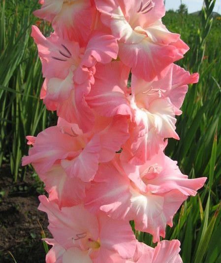Гладиолус "Турмалайн" - это изысканный сорт с нежными светло-розовыми цветками и небольшим белым горлом. Этот сорт идеально подходит для срезки и станет украшением любого сада. Гладиолус "Турмалайн" отличается отличной способностью к росту и размножению.